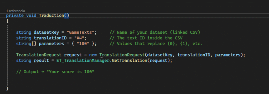 Dynamic translations are texts that change during runtime, such as dialogue lines, score displays, or messages that include player names or variables.